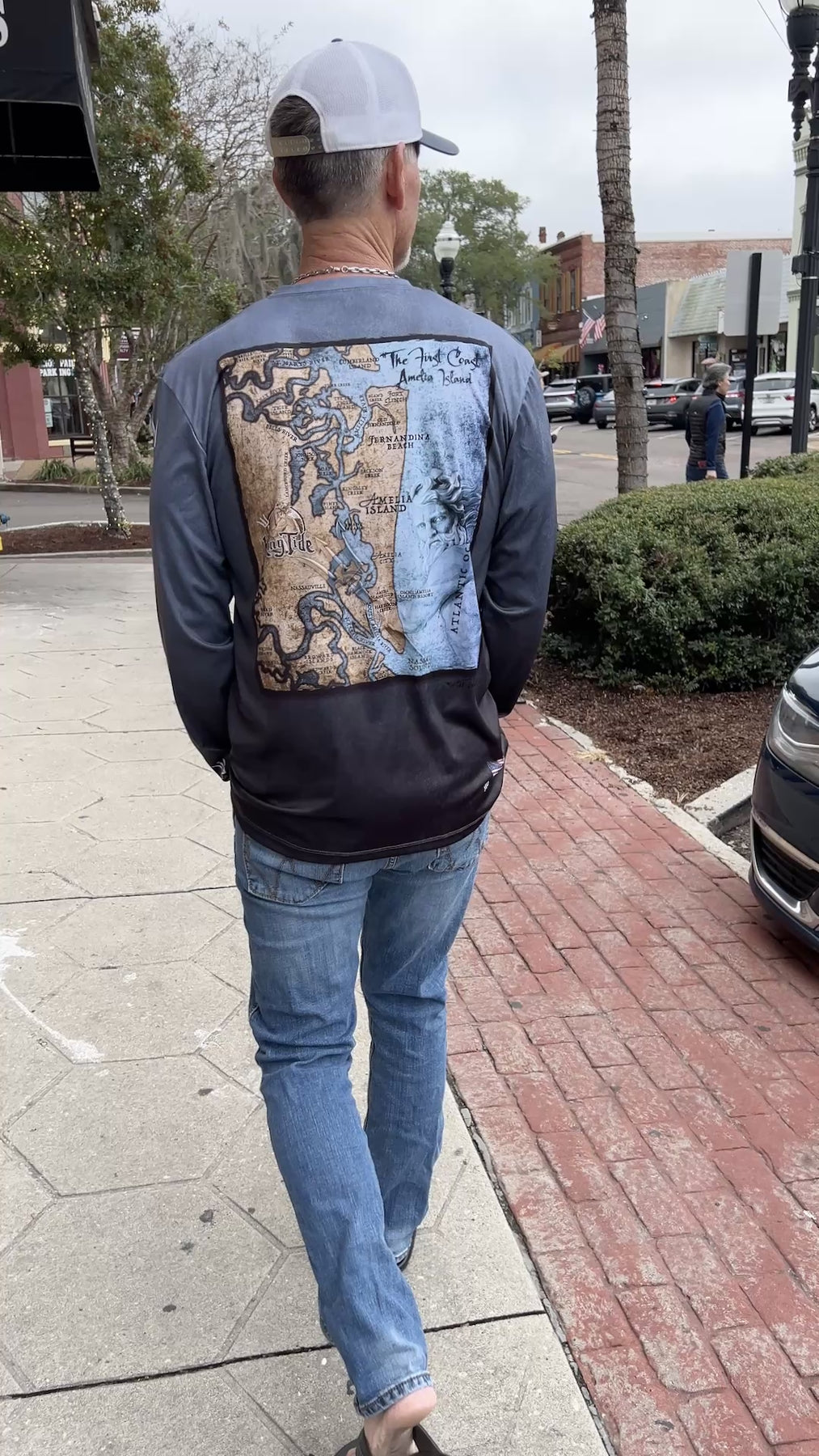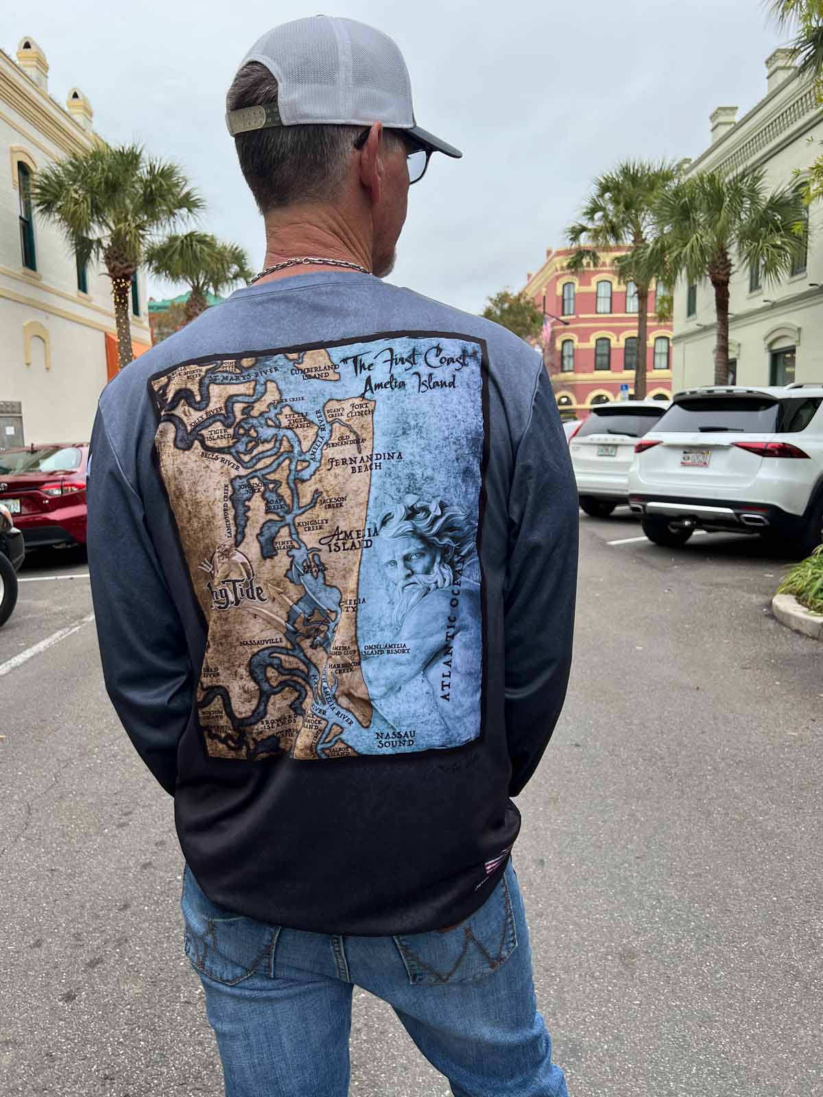 Amelia Island Vintage Chart UPF 50 Long-Sleeve Fine-art nautical chart steals the show on serene black 🖤🌿