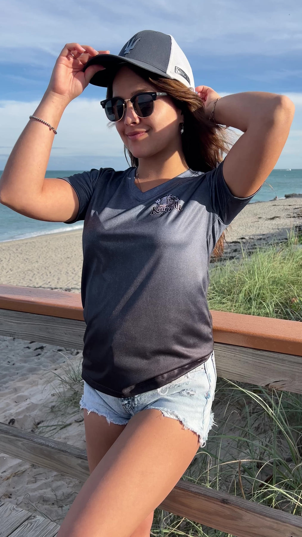 This short-sleeve V-neck blends effortless sophistication with laid-back style. A stunning fine art map of Jupiter, FL pops against a deep blue-black background. Super comfy, perfect for casual outings, and always ready for your next adventure. Gifting? The King Tide Gift Card is a perfect fit.