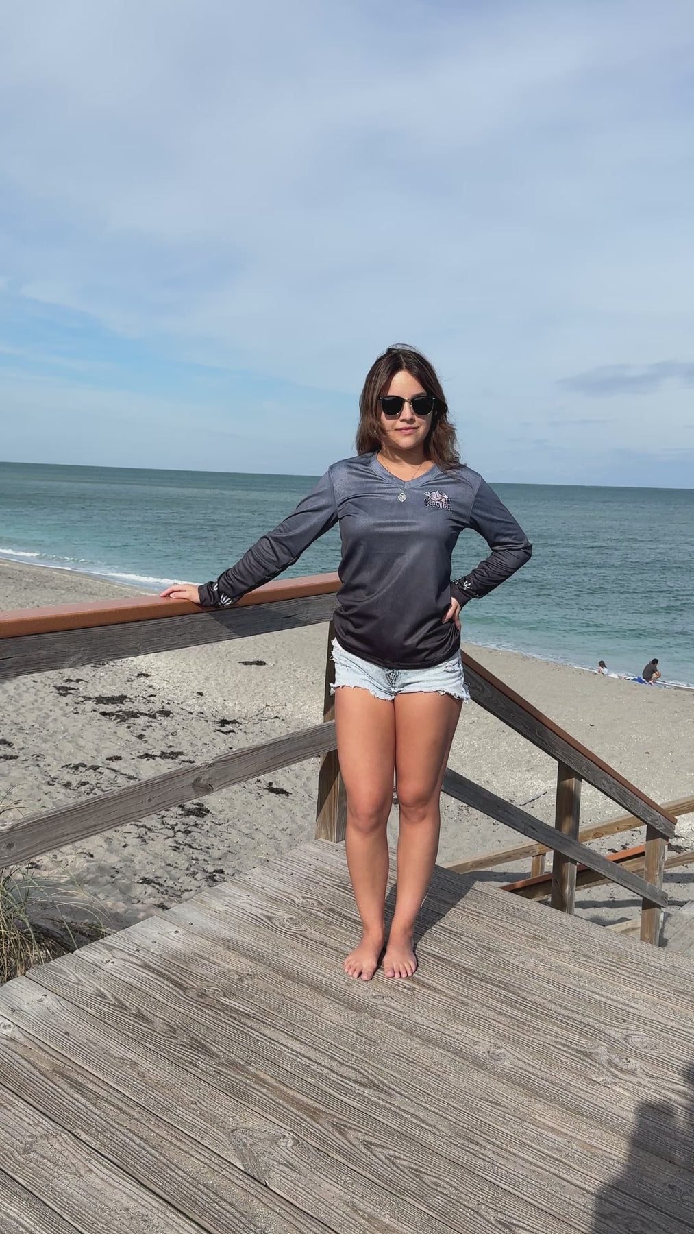 Artist-designed vintage Fort Pierce nautical chart inked sharp across a serene black UPF 50 canvas. Built for sunrise runs on South Hutch, afternoon casts off the jetty, sunset cocktails at Cobb’s Landing. Gift? A King Tide Gift Card takes out the guesswork.