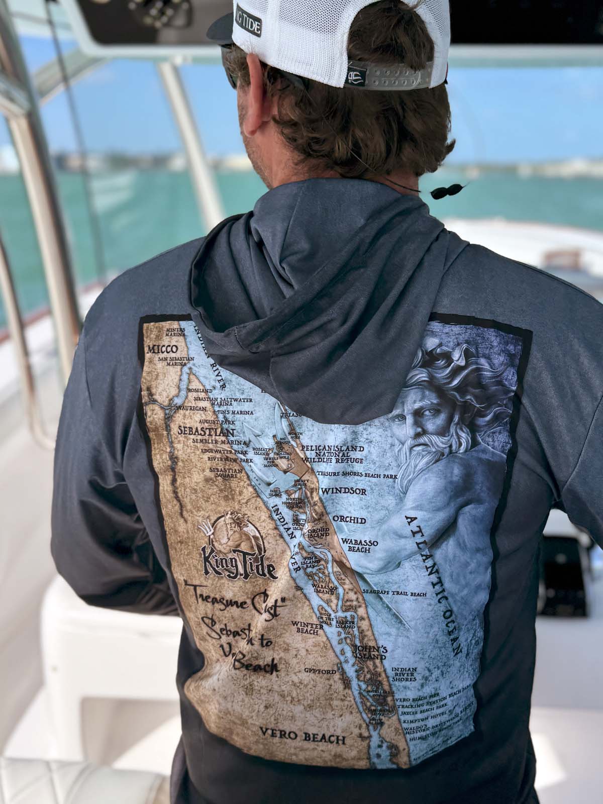 Weathered Vero nautical chart pops on serene black – effortless coastal cool